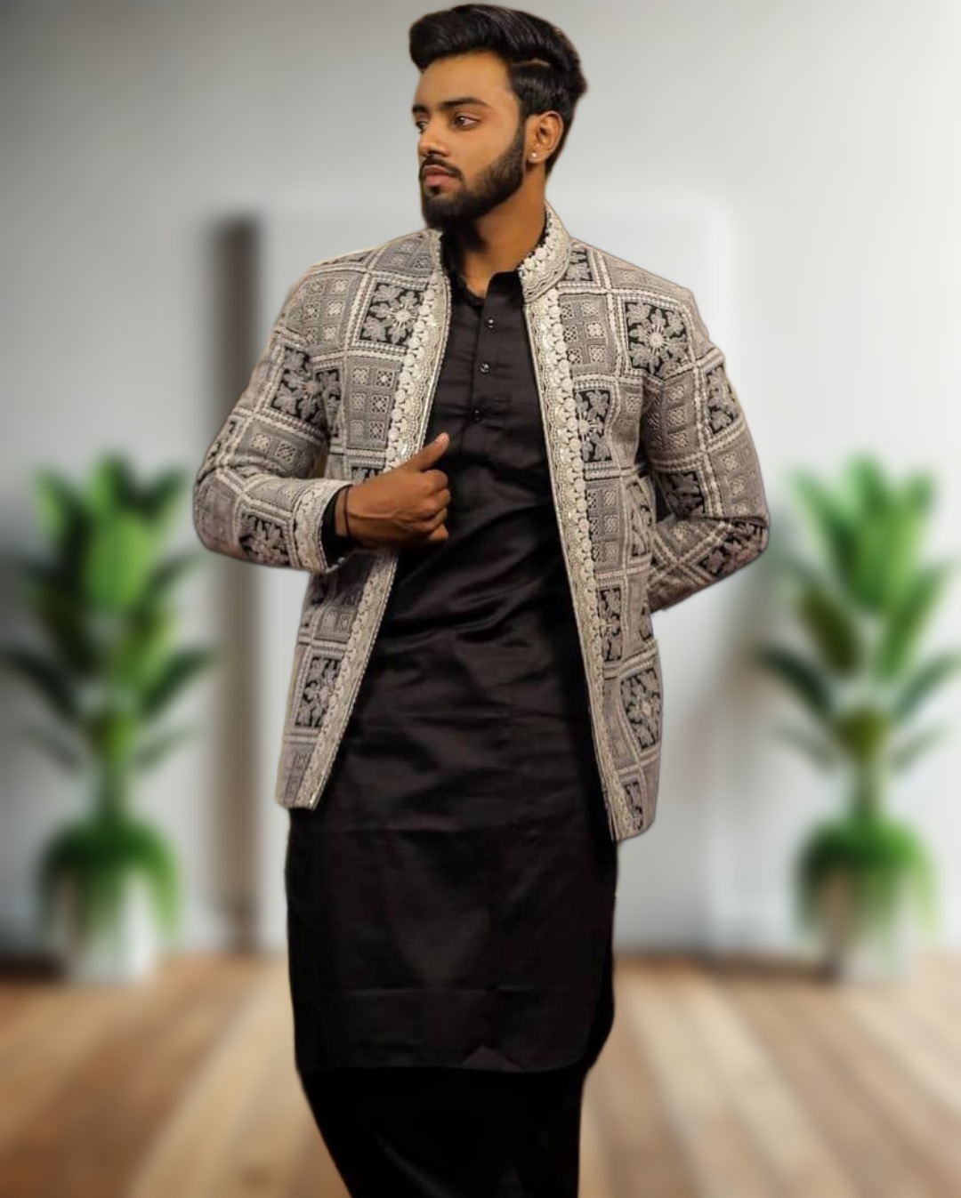 Step into sophistication with the Men’s Exclusive Most Trending Luxury Designer Kurta Pajama with Open Jacket Set by Faisaloutfits, a true blend of royal elegance and contemporary fashion. Designed for men who appreciate fine craftsmanship and timeless style, this ensemble is perfect for weddings, receptions, festive celebrations, and grand occasions.