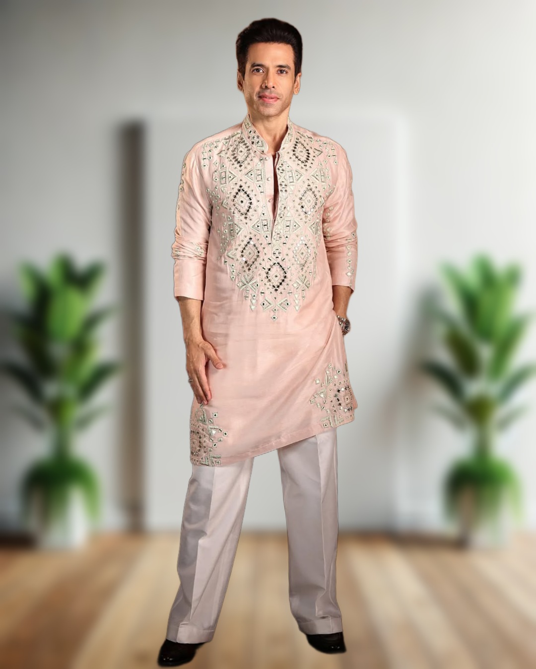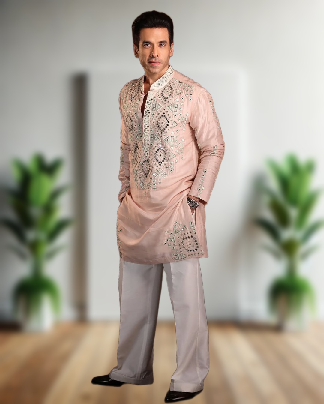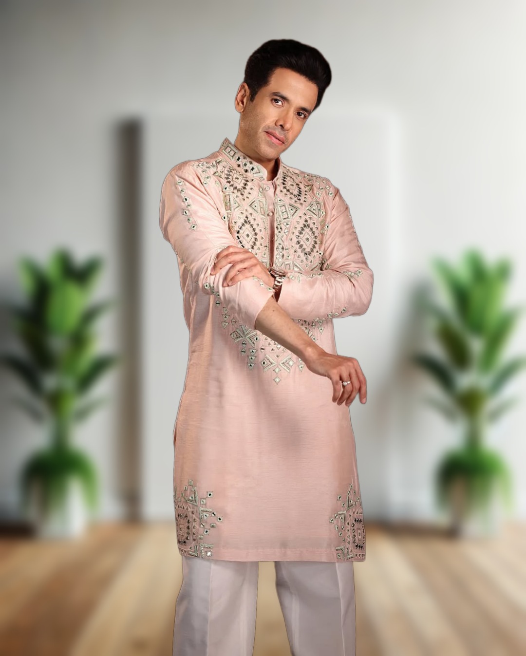 - Premium designer kurta pajama set with real mirror embroidery
