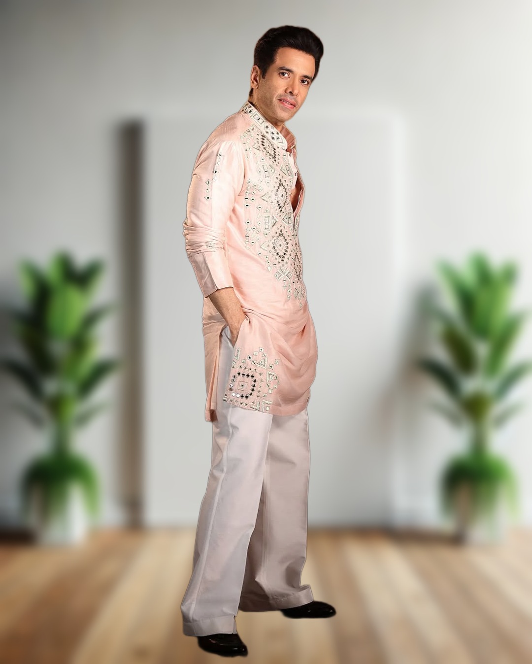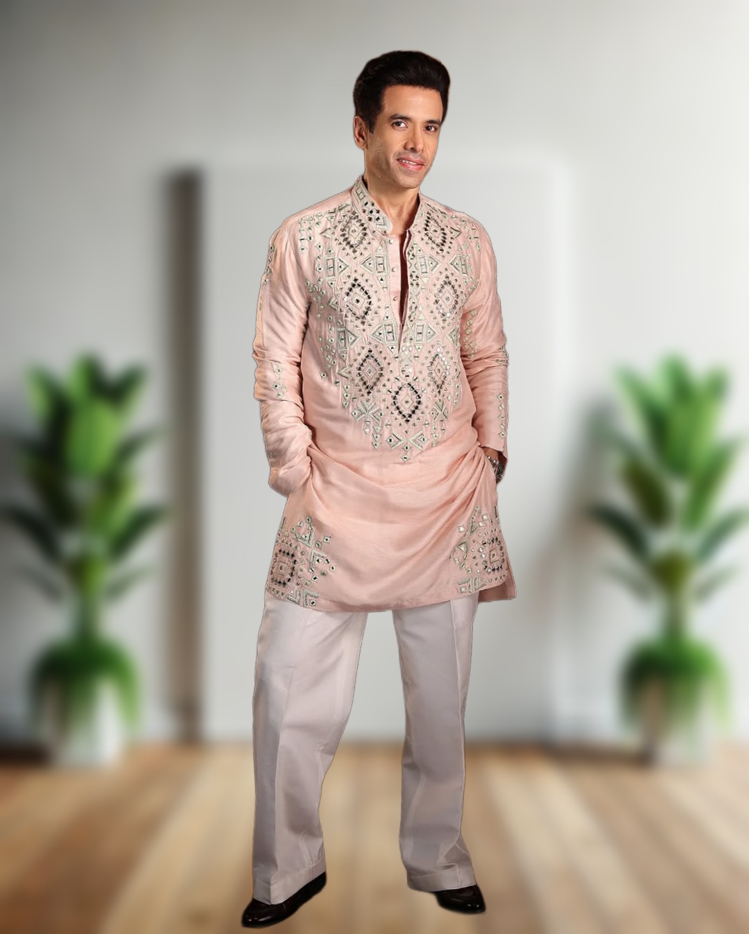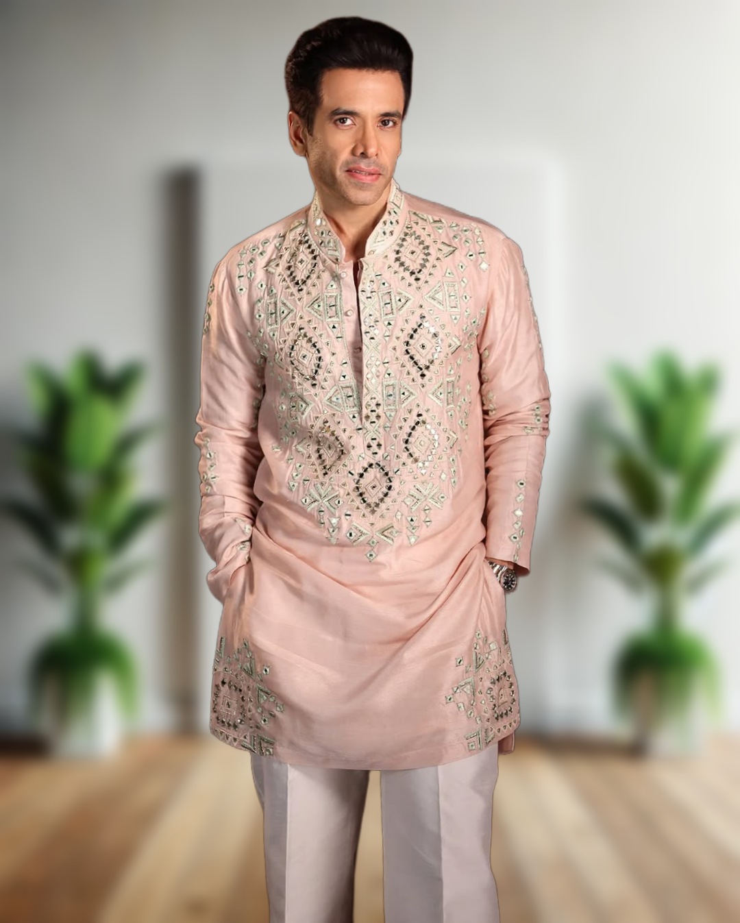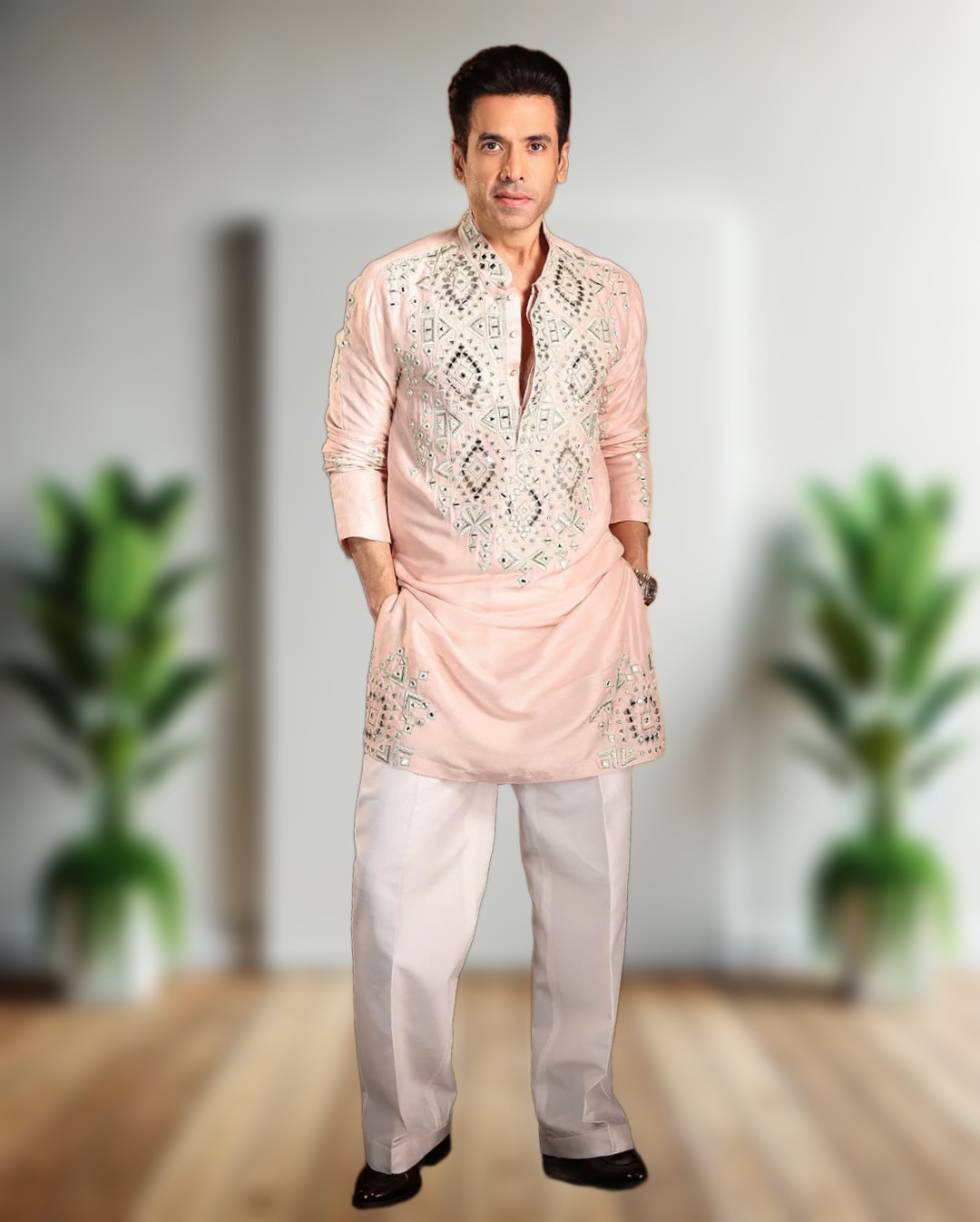 - Premium designer kurta pajama set with real mirror embroidery