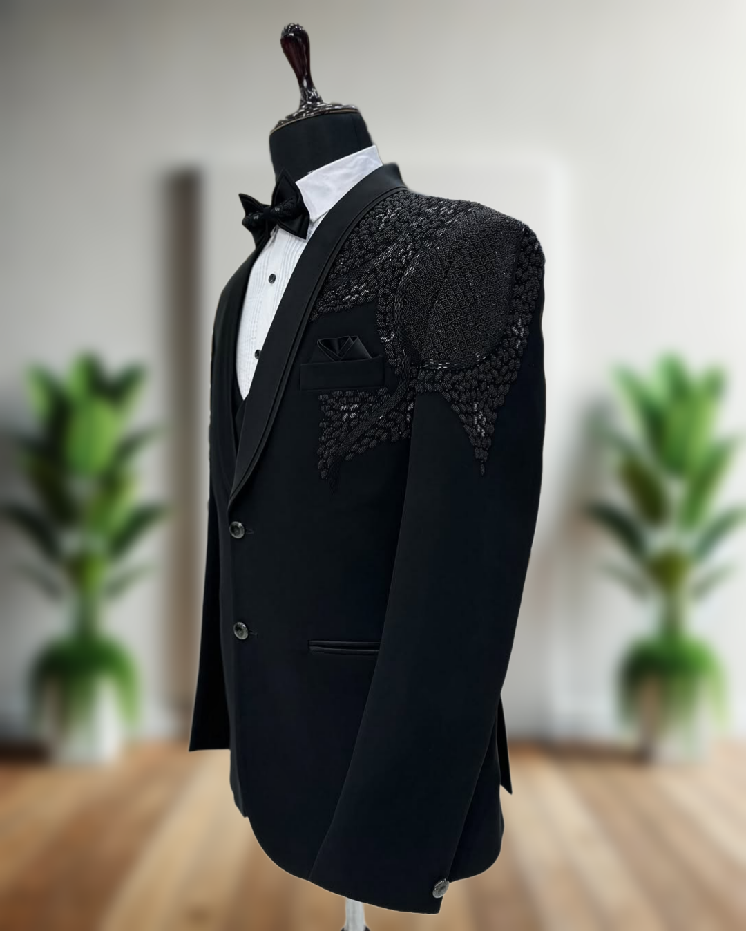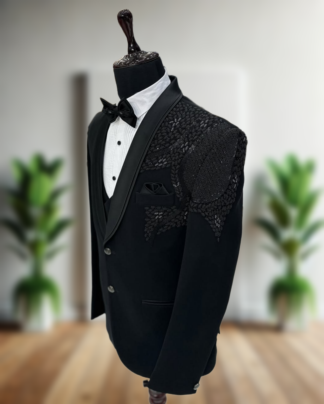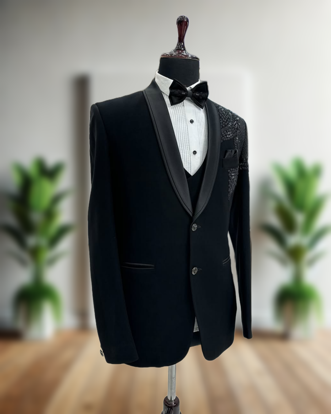 - Premium handcrafted five-piece tuxedo set