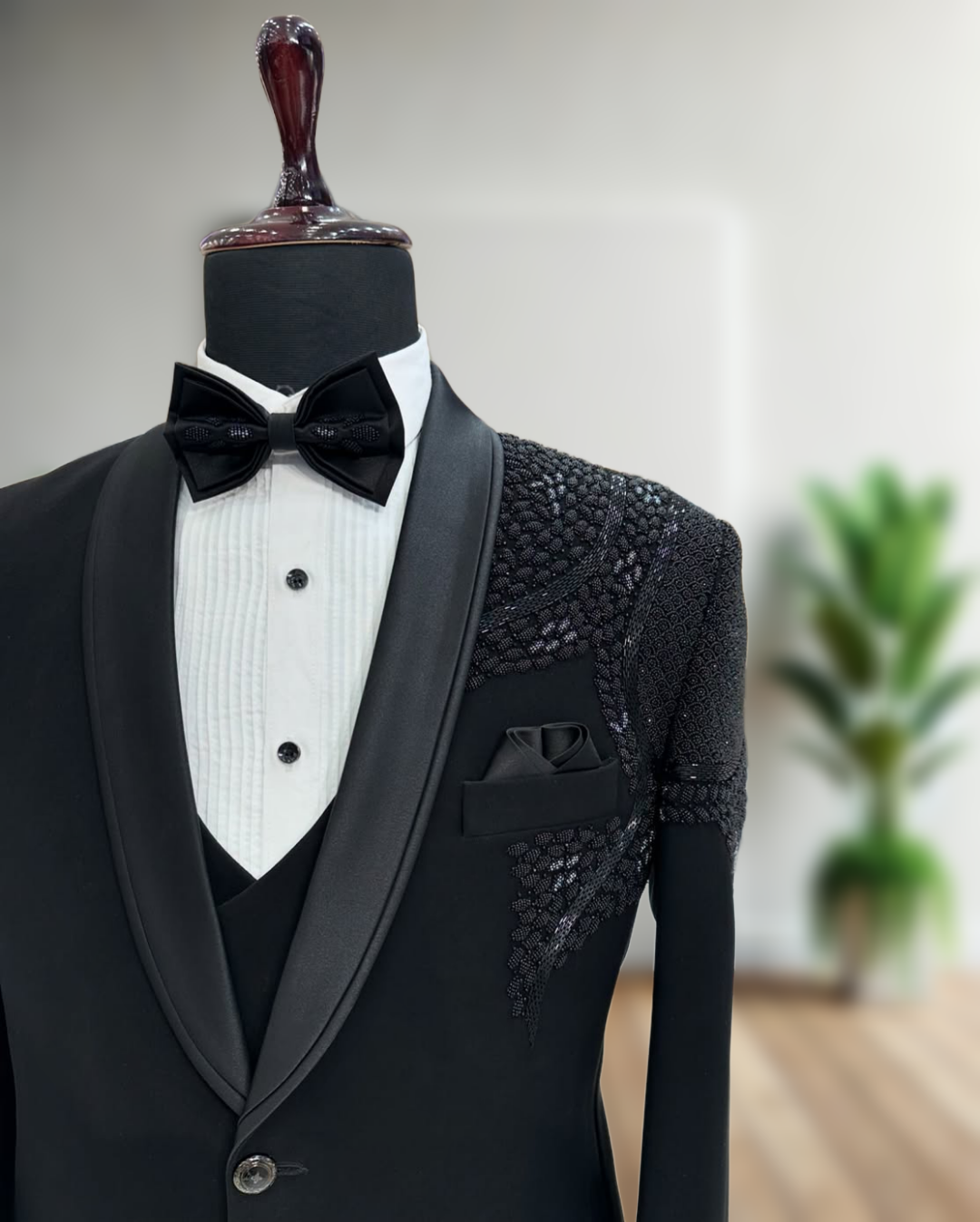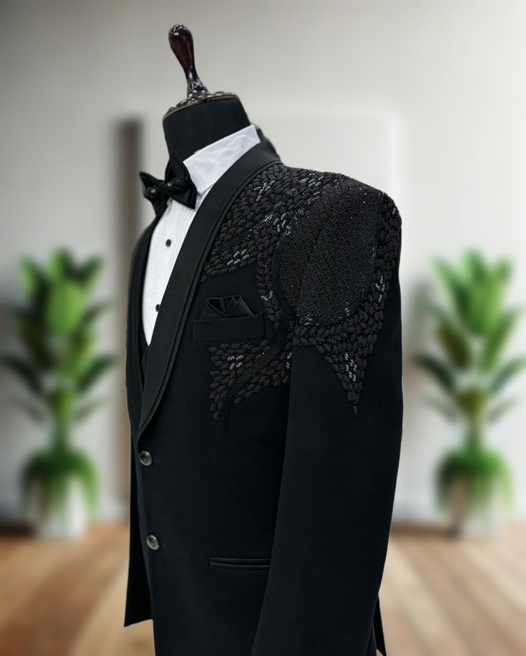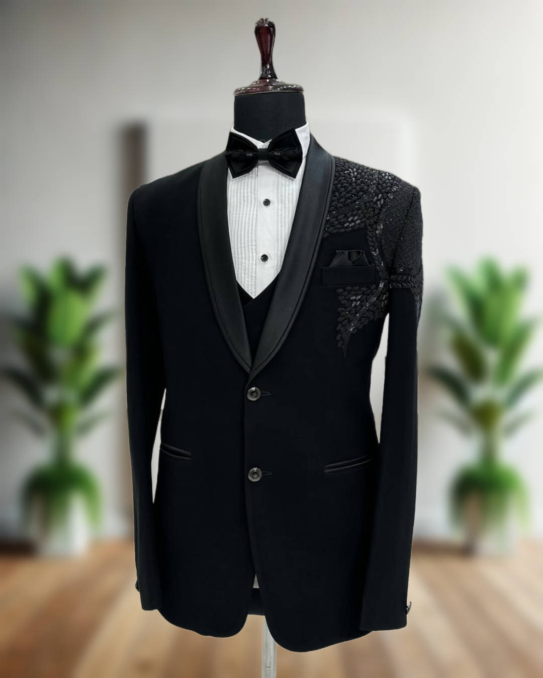 - Premium handcrafted five-piece tuxedo set
