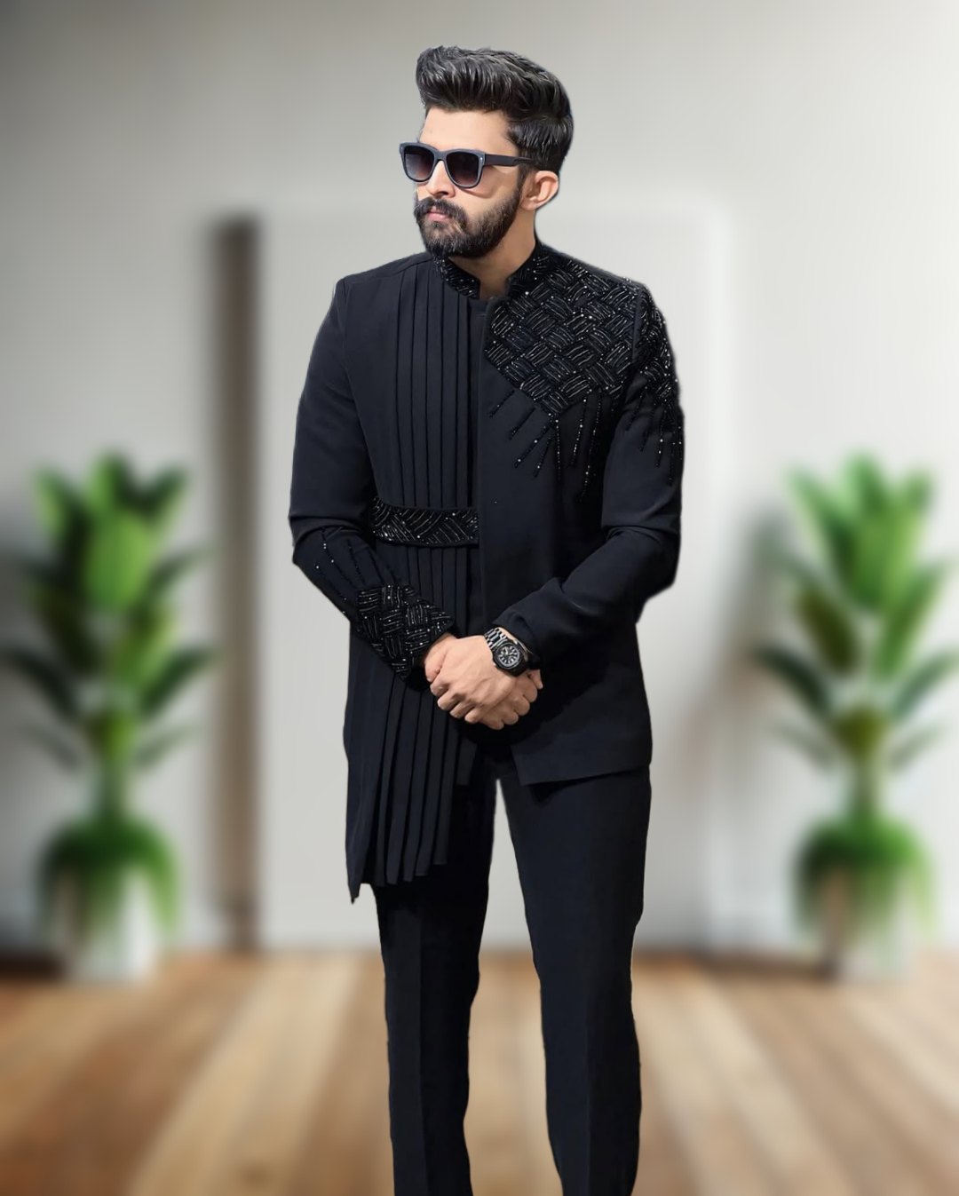 Intricate hand-finished detailing, precision stitching, and luxury buttons elevate this Jodhpuri suit to elite designer standards. The classic closed-neck Bandhgala design blends seamlessly with royal aesthetics, making it an ideal choice for weddings, receptions, engagement ceremonies, festive celebrations, and high-end formal events.
