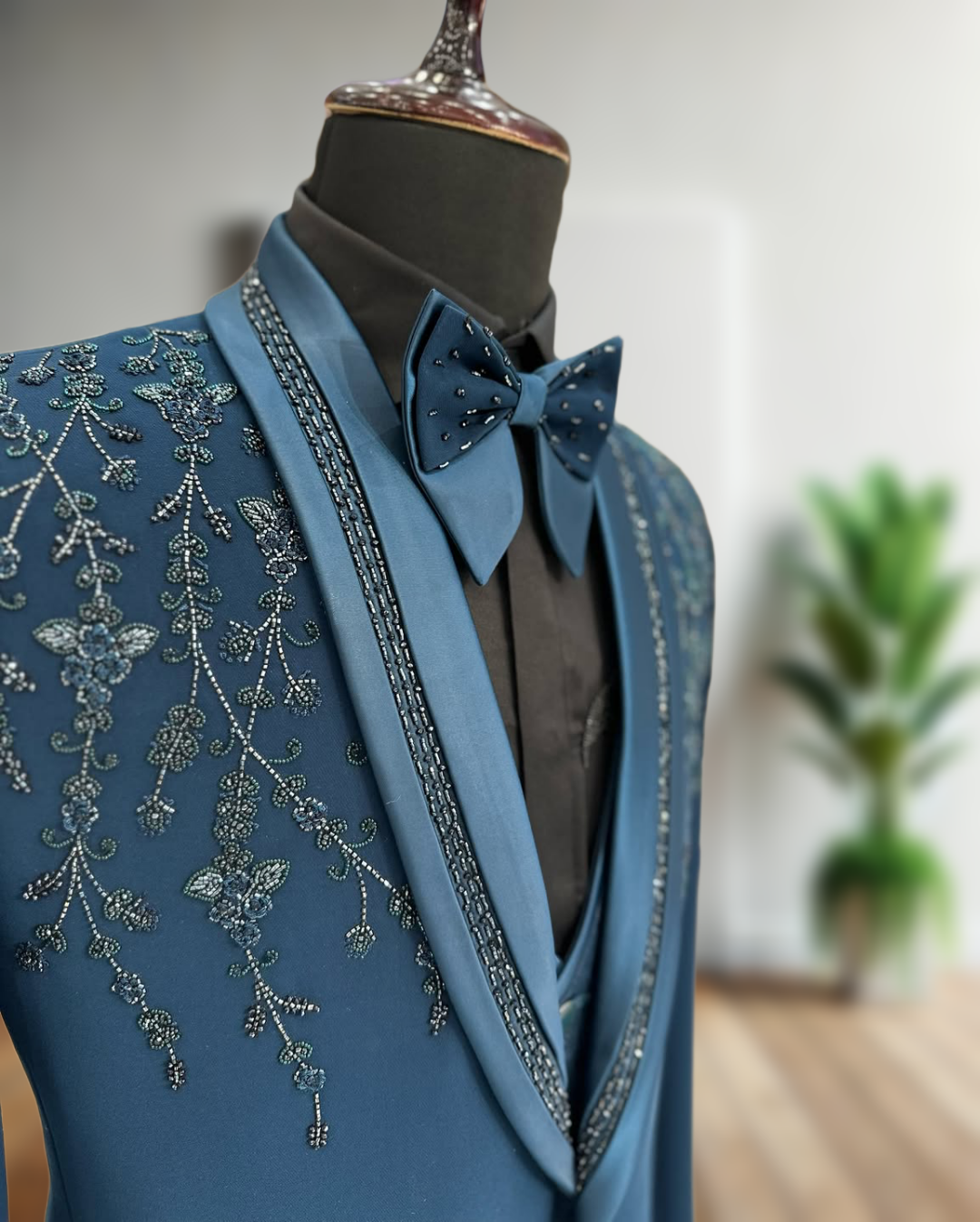 - Premium designer luxury handcrafted five-piece tuxedo suit