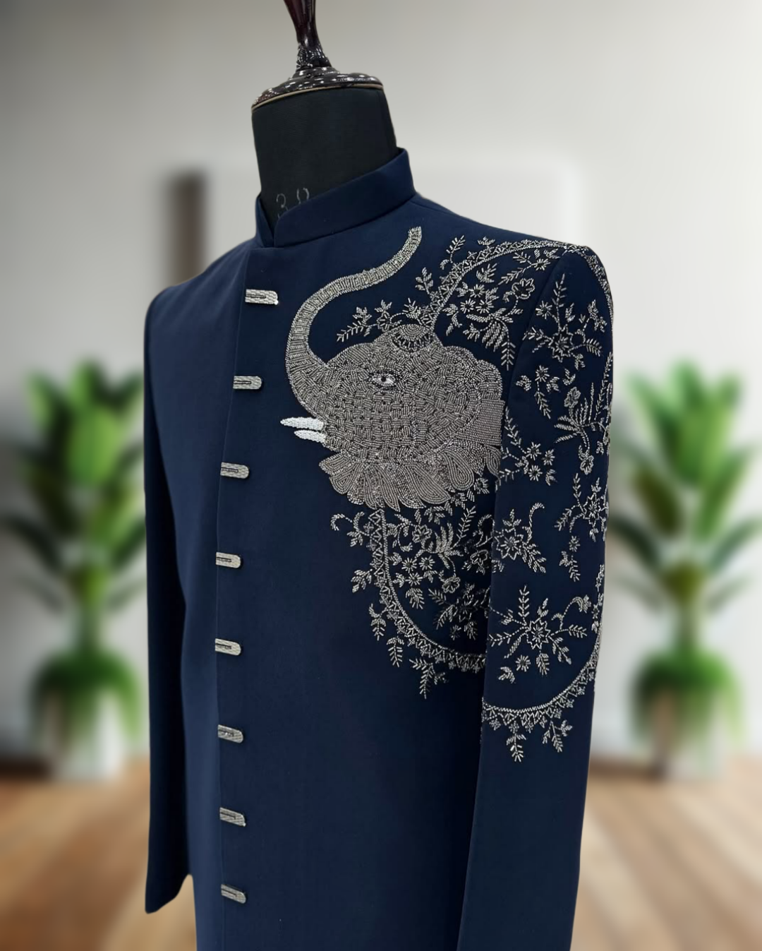 Redefine modern ethnic elegance with this Men’s Exclusive Most Trending Designer Luxury Handcrafted Indo-Western with Pant Set by Faisaloutfits, thoughtfully designed for men who appreciate refined craftsmanship and contemporary style. This sophisticated ensemble blends traditional Indian aesthetics with modern tailoring, making it a standout choice for weddings, festive celebrations, and high-end social gatherings.