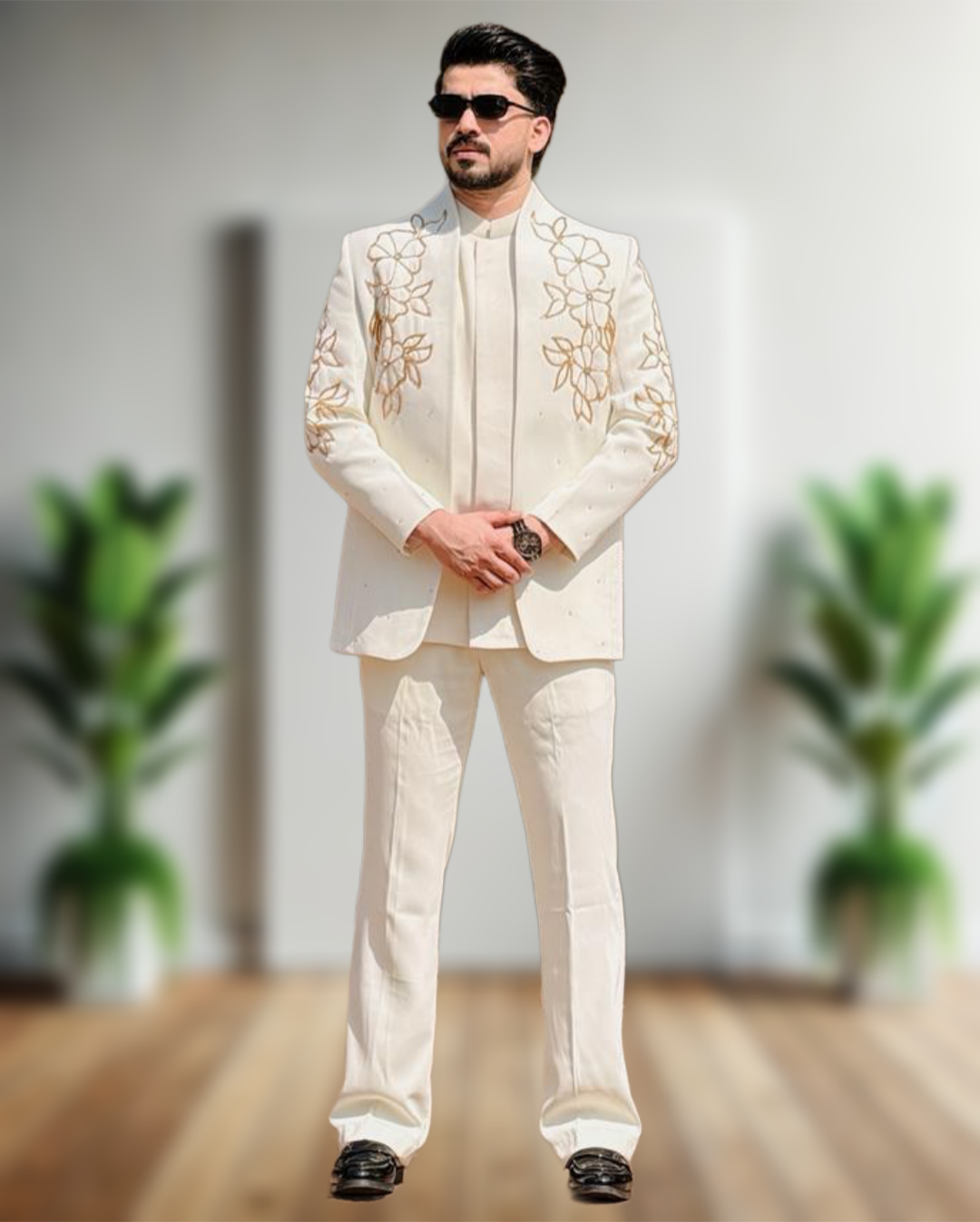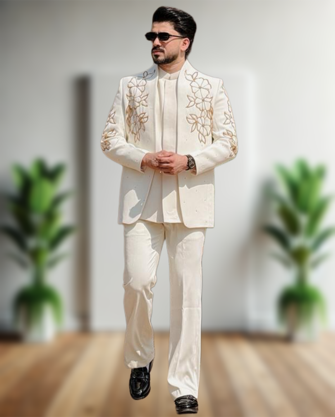 Crafted from premium-quality fabric, this suit offers superior comfort, durability, and a luxurious finish. The breathable material ensures ease of movement while preserving a crisp, polished look throughout long celebrations. Every stitch, button, and detail highlights the skilled craftsmanship and attention to quality that define FaisalOutfits.