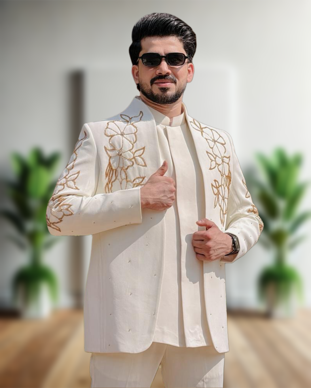 - Exclusive designer handcrafted open-style Jodhpuri suit