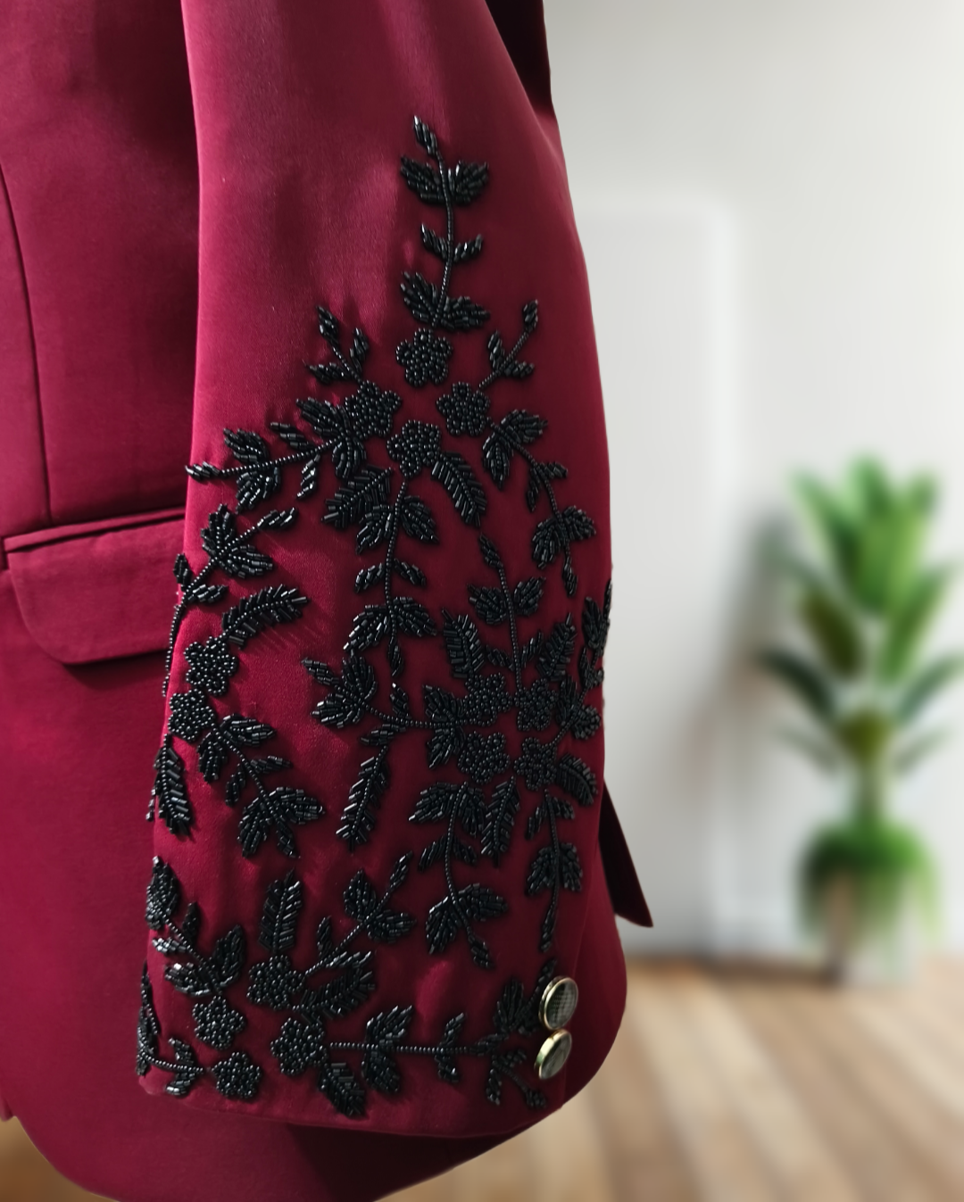Crafted from high-quality fabric, this three-piece suit includes a tailored blazer, a matching waistcoat, and perfectly fitted trousers. The structured silhouette enhances your physique, while the fine stitching and handcrafted detailing reflect superior craftsmanship. The elegant lapel design and clean finish add a timeless charm, making this outfit a true statement of luxury.