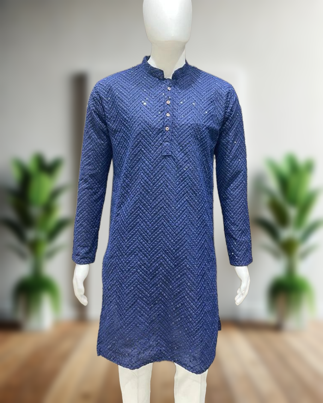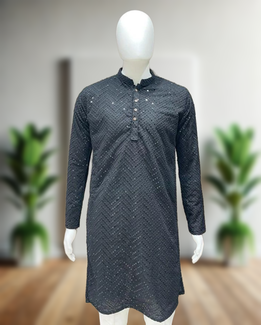 - Premium handcrafted Lakhnowi kurta with intricate embroidery