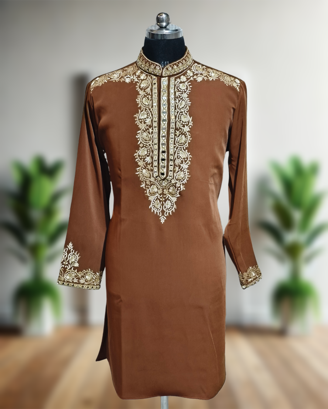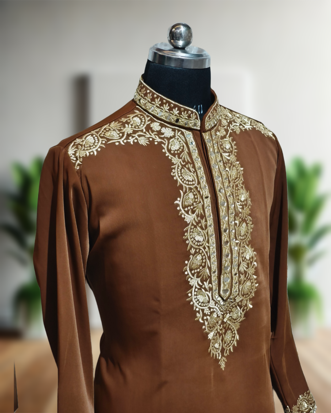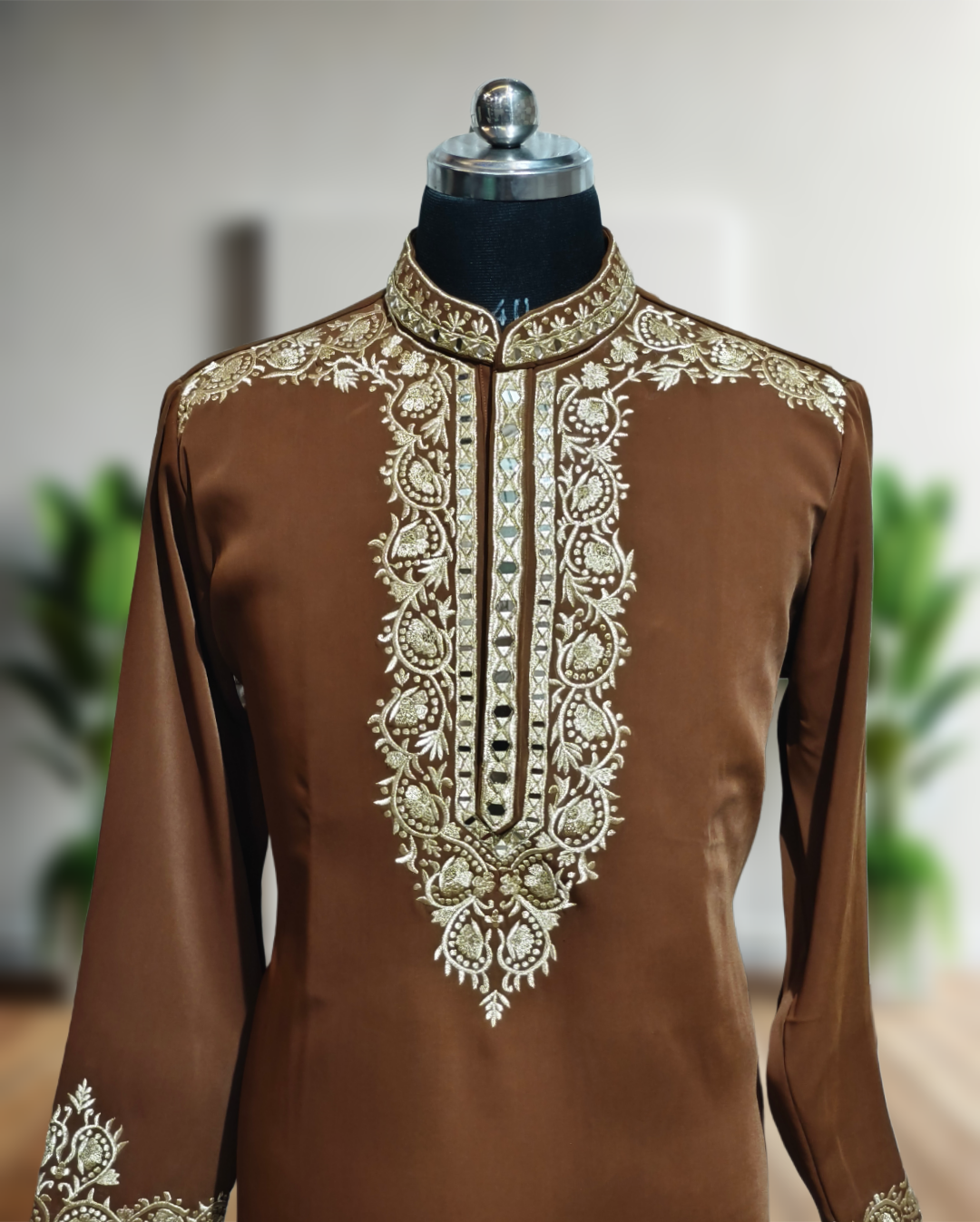 Premium men’s designer kurta pajama set featuring luxurious real mirror embroidery work. Handcrafted for a royal look, perfect for weddings, festive occasions, and special events. Comfortable, elegant, and timeless ethnic wear by FaisalOutfits.