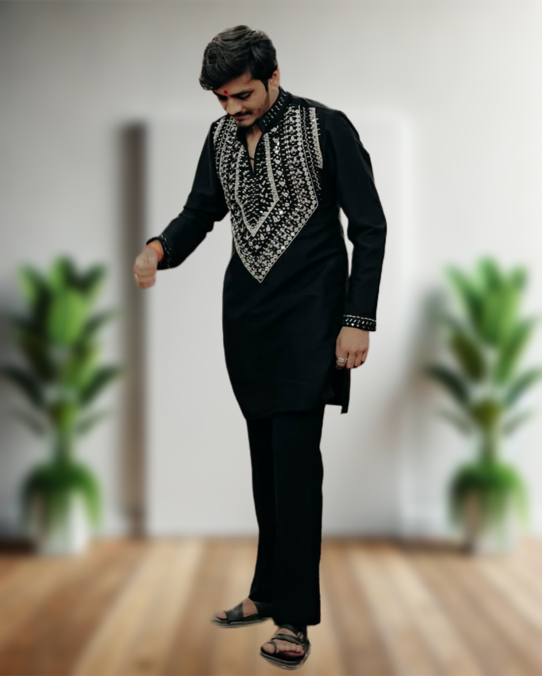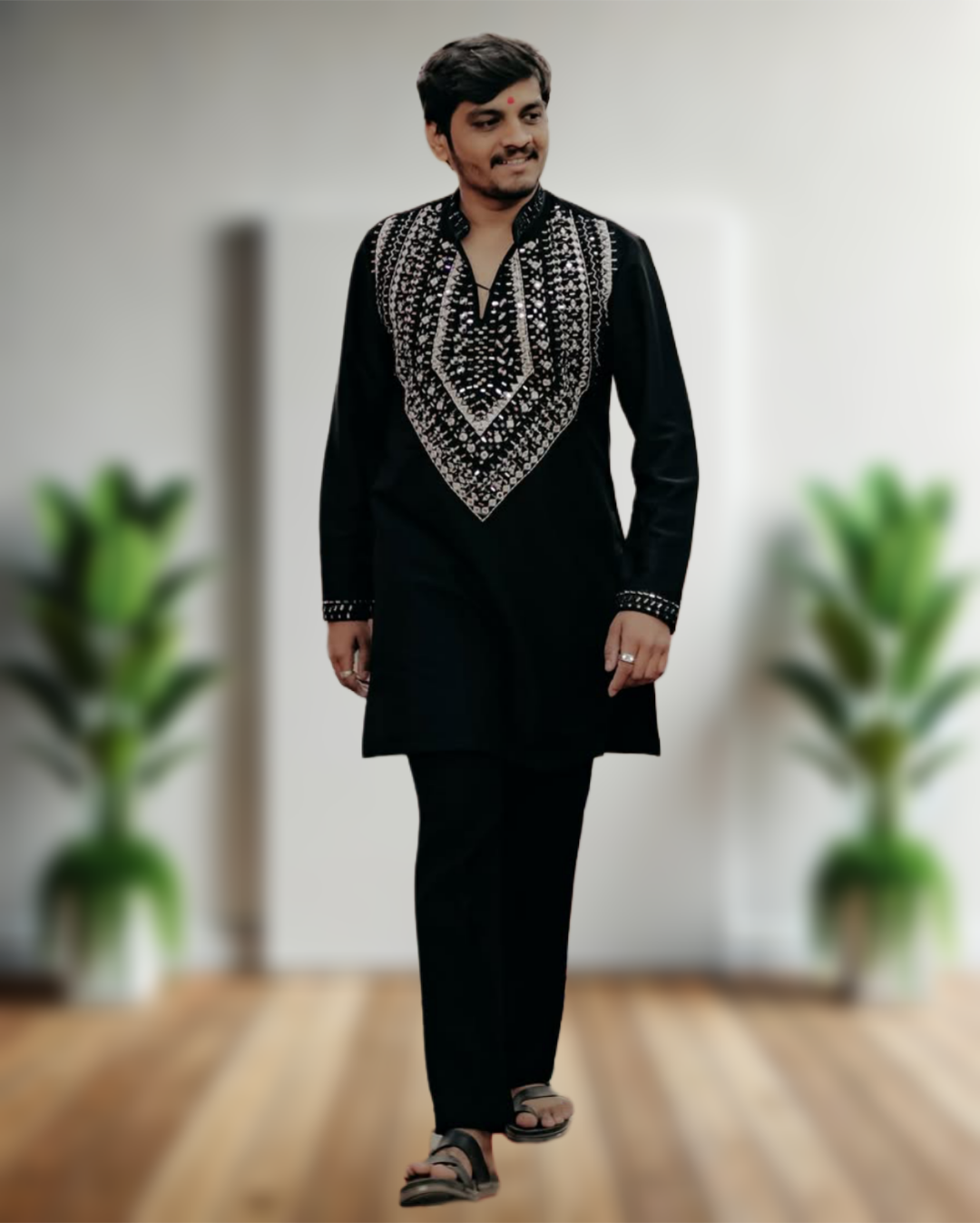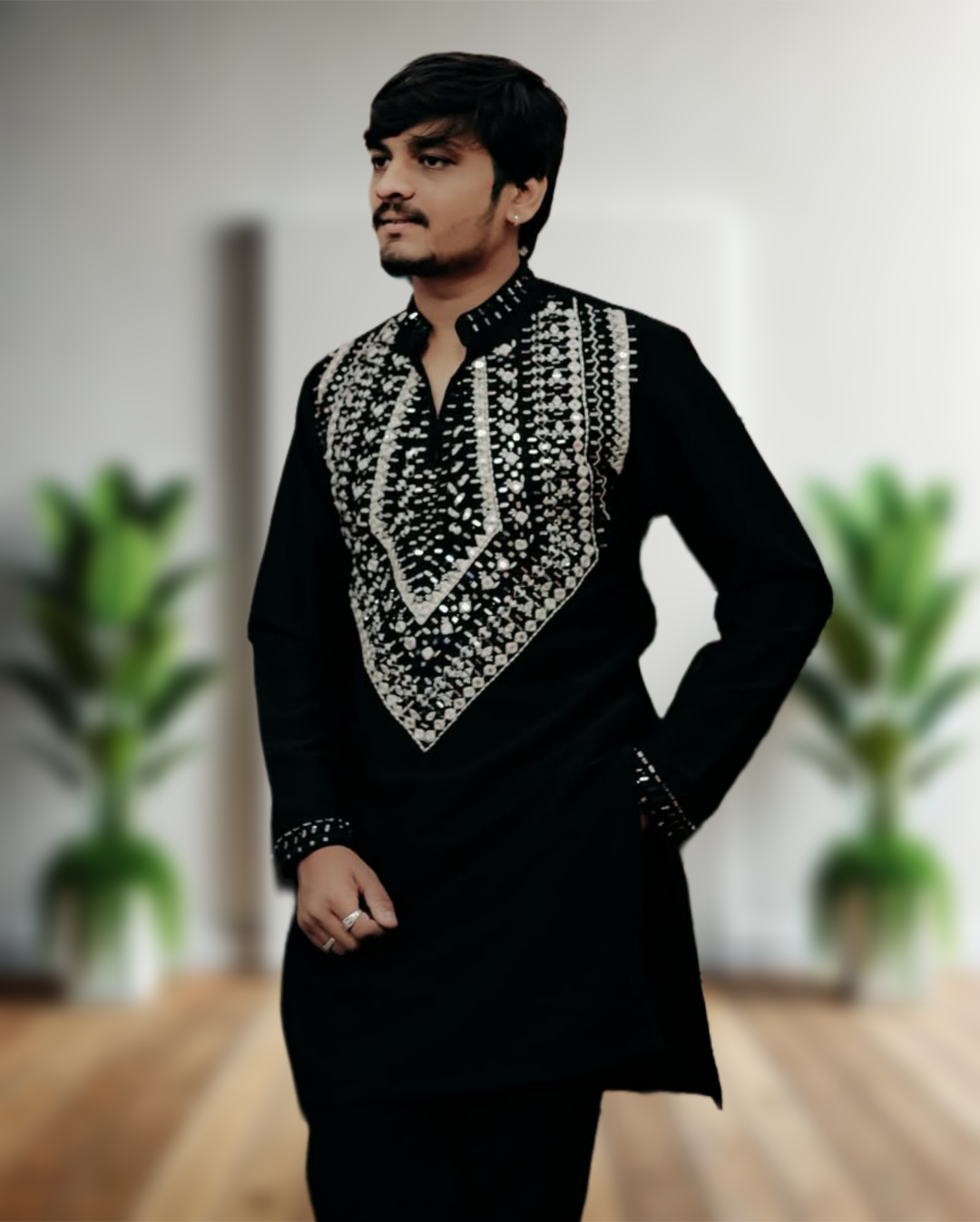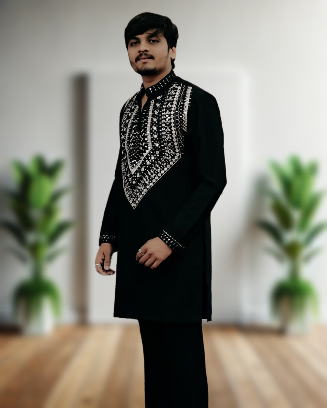 Make a bold and graceful style statement with this most-trending luxury mirror work kurta pajama set, where tradition meets contemporary fashion—crafted exclusively for men who demand elegance, quality, and distinction.