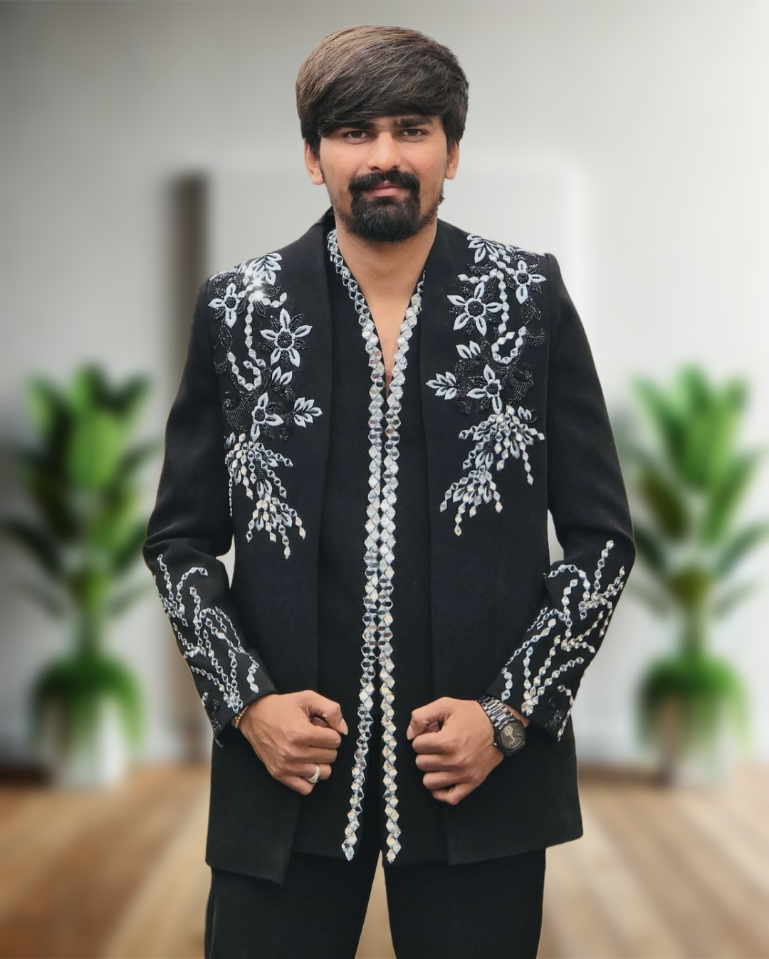 Step into royal sophistication with this Men’s Exclusive Most-Trending Designer Luxury Real Mirror Handcrafted Open Jodhpuri Set by FaisalOutfits, specially designed for men who want to make a bold and unforgettable statement. This premium ensemble reflects heritage craftsmanship blended with contemporary royal styling, making it an ideal choice for weddings, receptions, engagements, festive celebrations, and grand occasions.