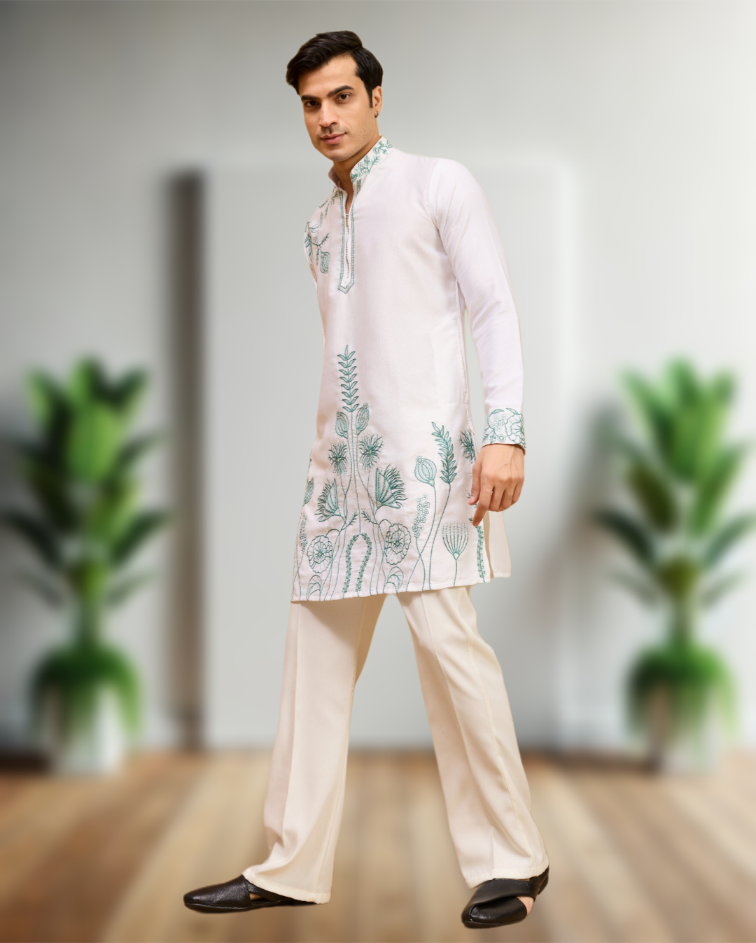 Paired with a perfectly tailored pajama, this set offers both comfort and style. The clean silhouette enhances your personality while maintaining traditional charm. Whether you style it with classic mojaris or modern footwear, this kurta pajama set delivers a statement look that stands out in every gathering.