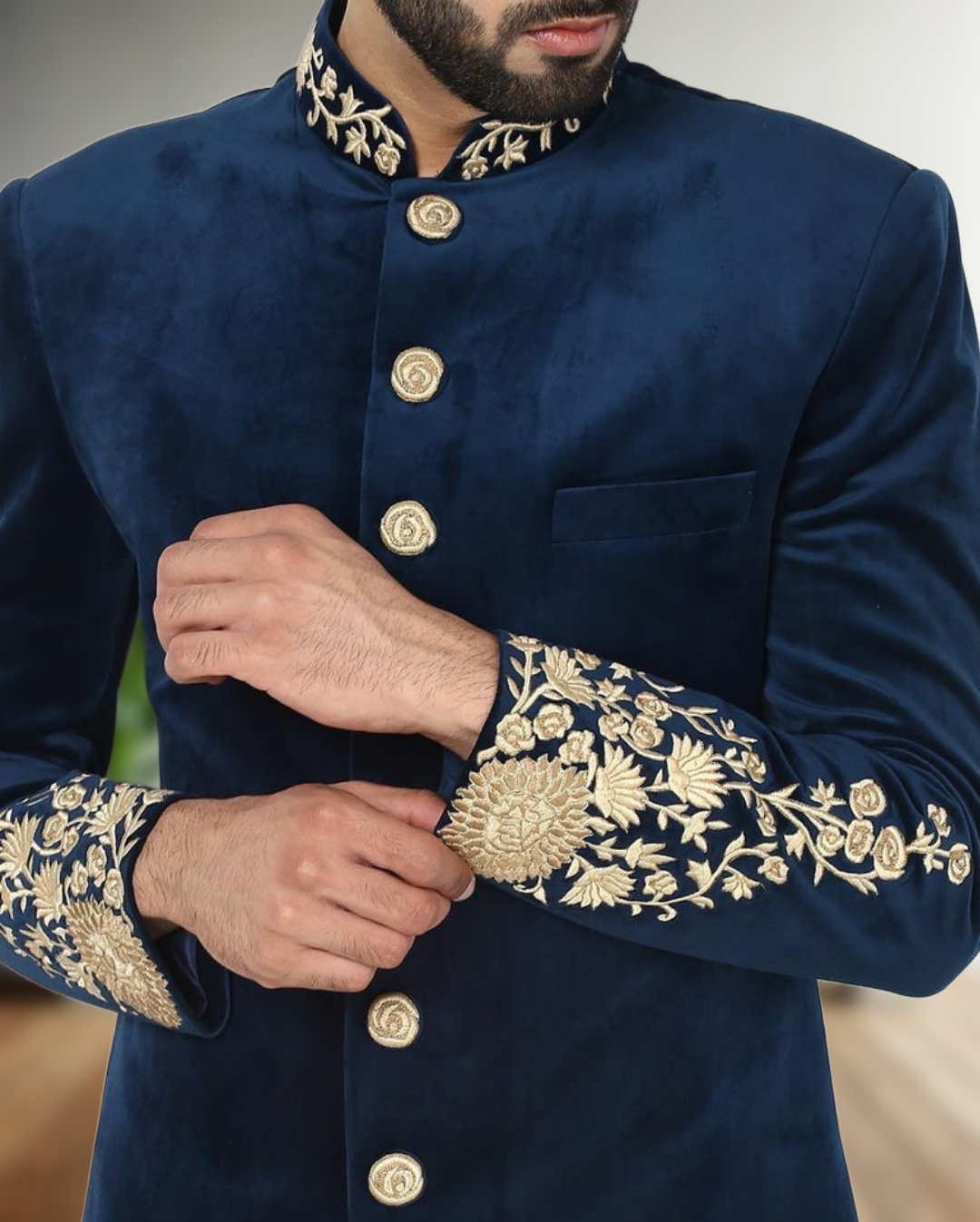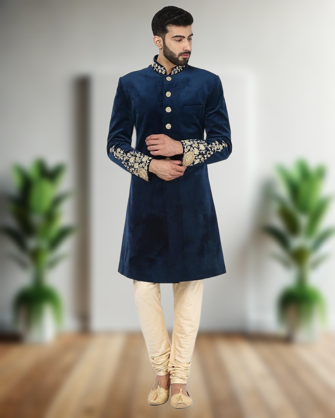 Perfect for grooms, wedding guests, festive parties, engagements, and cultural events, this versatile outfit can be styled with traditional footwear, accessories, or a jacket to elevate its royal appeal. Its modern yet timeless design ensures you make a lasting impression wherever you go.