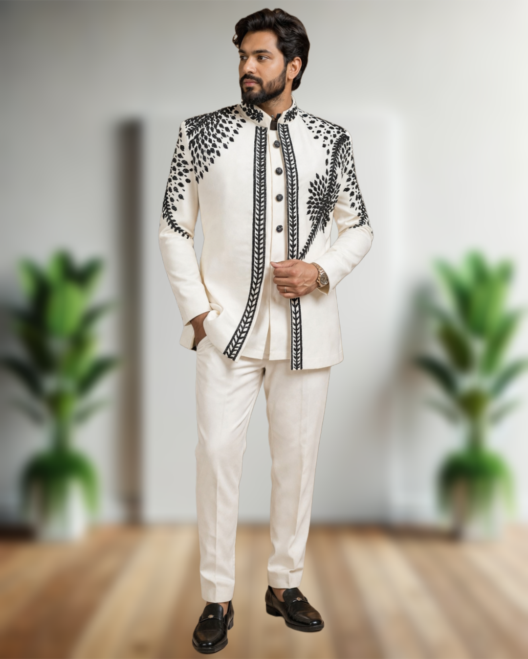 Elevate your style with this men’s premium handcrafted open Jodhpuri suit by FaisalOutfits. Designed with a modern royal touch, this luxury designer outfit is perfect for weddings, receptions, and festive occasions, offering a sharp, elegant, and sophisticated look.